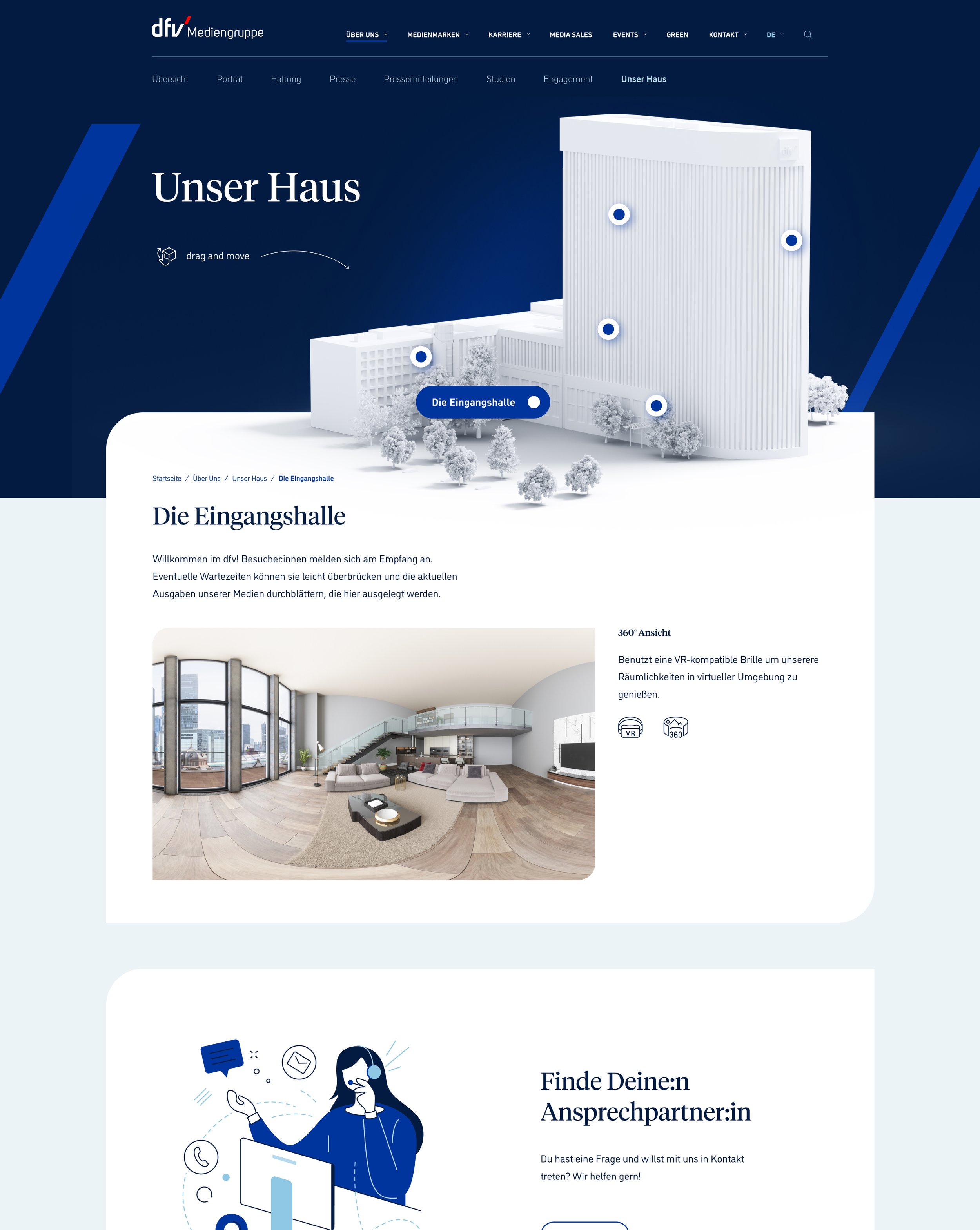 Ein besonderes Highlight der neuen Website findet man in der Themenwelt “Über uns”; dort können Besucher den Hauptsitz durch eine interaktive virtuelle Tour kennenlernen und mehr über die vielfältigen Angebote sowie die Unternehmenskultur erfahren.